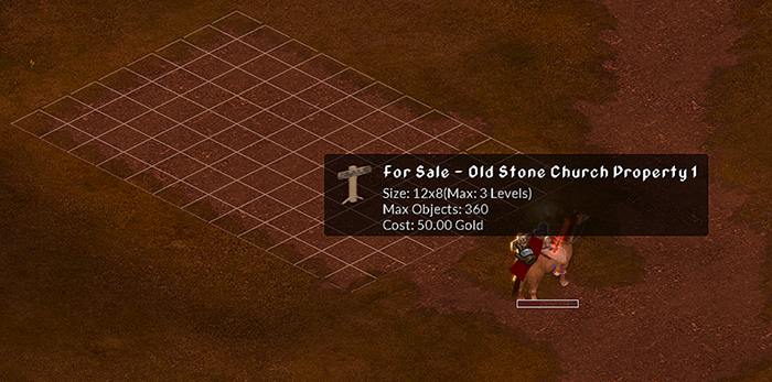 You can hover over the “For Sale” sign to see the property boundary that is for sale or double click on it to get additional details about the property such as size and how many objects it can hold. From there, you can purchase the property.
